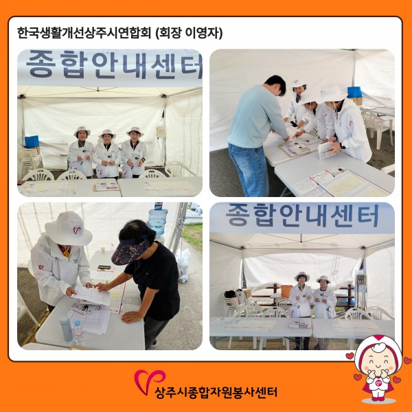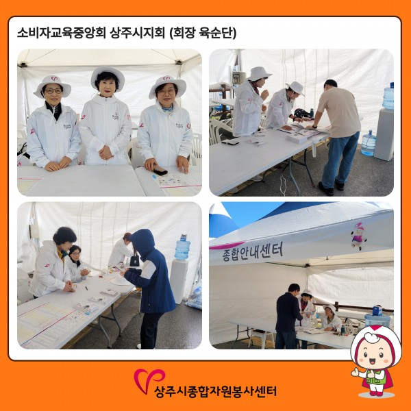 소비자교육중앙회 상주시지회와 한국생활개선상주시연합회 자원봉사자들은 총 5일간, 상주를 찾은 많은 분들을 위해 종합안내센터 운영 자원봉사활동을 실시하였습니다.