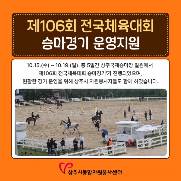 제106회 전국체육대회 승마경기 운영지원 자원봉사활동