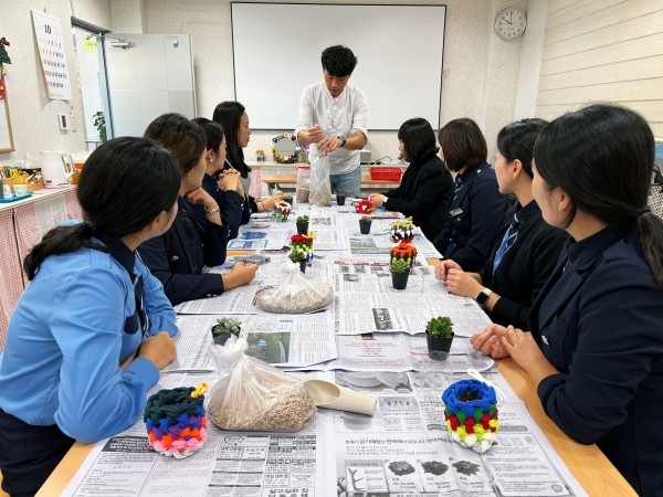 버려진 양말목과 페트병을 재활용해 화분 만들기 체험을 하며,