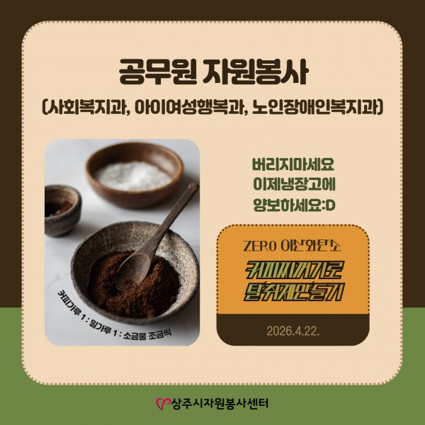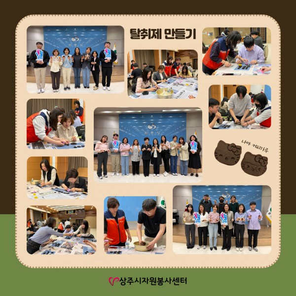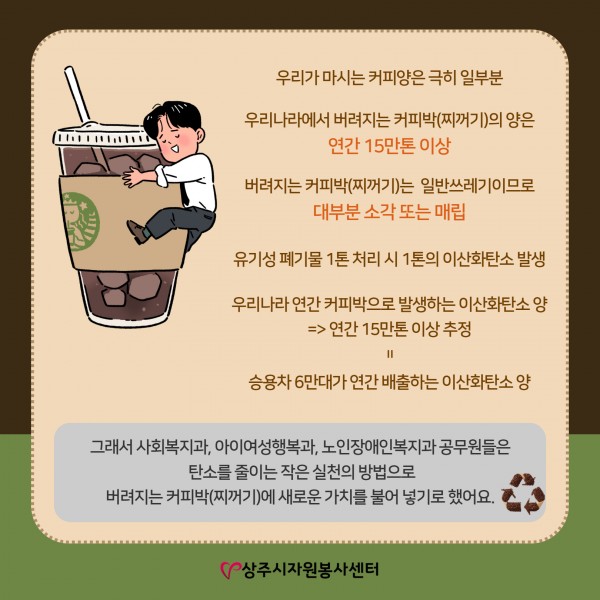 이날을 위해 자원봉사센터는 카페에서 버려지는 커피박(커피찌꺼기)를 모아 일주일 동안 열심히 말렸는데요^^;